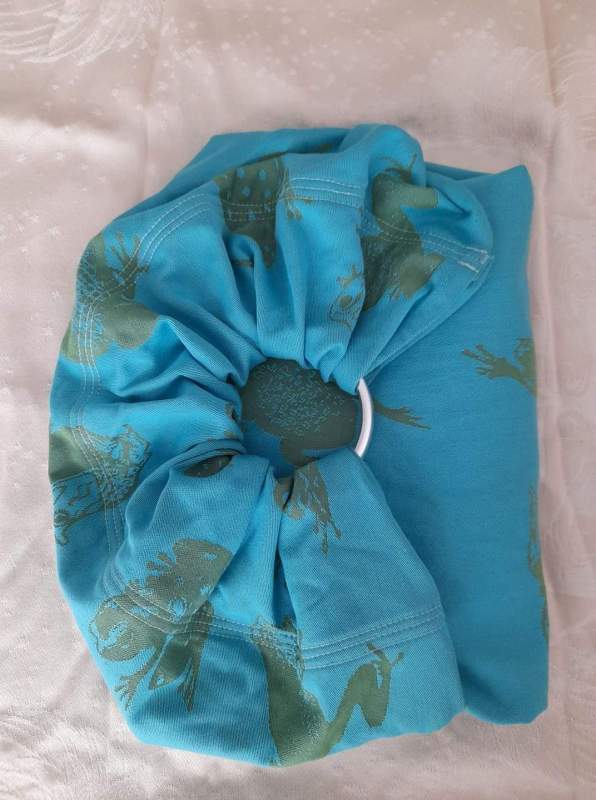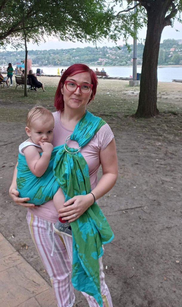 Thanks to Lenine putujuce nosiljke (Lena’s traveling carriers) I have the opportunity to carry my baby in a ring sling Sycha slings Frog spring sky. I thought I’d never be able to carry a baby in a ring sling, but I’ve been proven otherwise since we’ve been using this one. We install it easily and quickly and we can go for a walk. My baby tester is almost 15 months old and weighs about 11 kg. I need more practice to position the rings well and place the material further away from the neck, but with practice we will master that too. The material is soft (cotton), thinner, breathable and adapts to both baby and mom, does not blister and is suitable for these summer days, the pattern is ok, for boys 😉 All in all, I am very satisfied with this ring sling and grateful to Lpn for the opportunity to we enjoy being carried, even though the baby has already walked a long time ago and often boycotts being carried in other carriers. I would recommend this ring sling to others