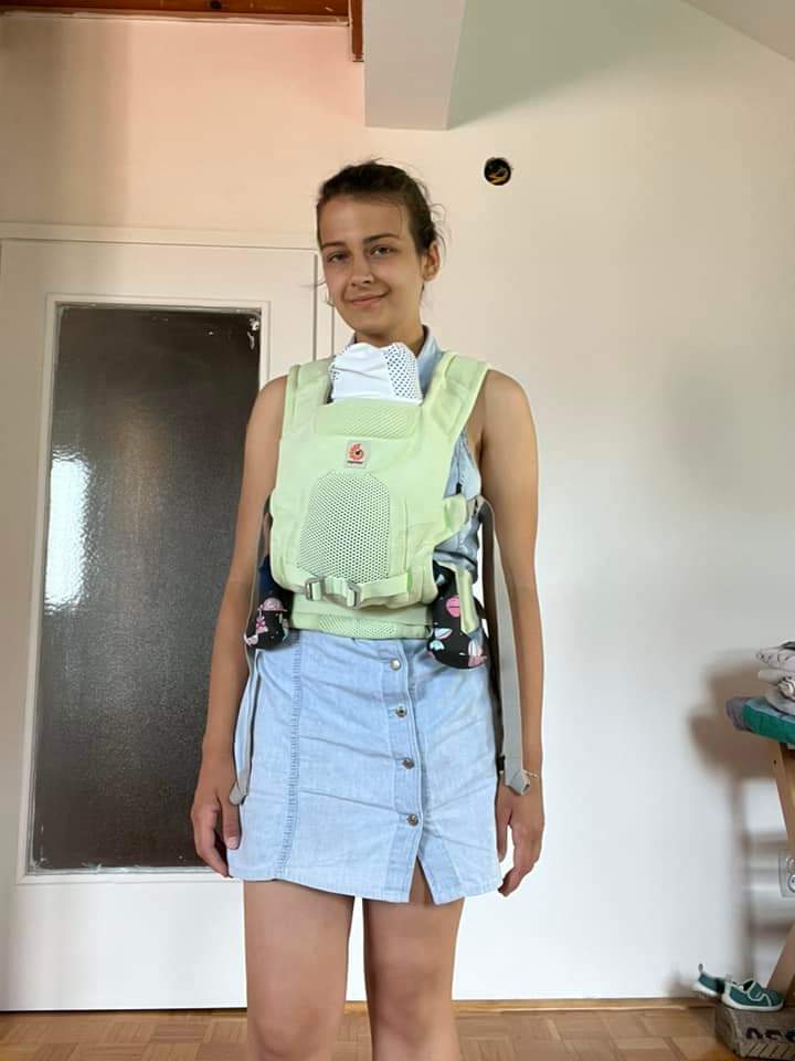 I would like to thank Lena’s traveling carriers for giving me an oportunity to try out this wonderful carrier. At the time of the testing my little one is 6 months old and weights around 10kgs, wich would be maybe considered to big for this carrier, but it handled the weight of my baby perfectly. The lumbar suport is so good, and the way the straps are shaped. The material of the carrier is really special, and inovative. I am amazed how light, airy and breathable it is. I would absolutely recommend this for smaller babies.