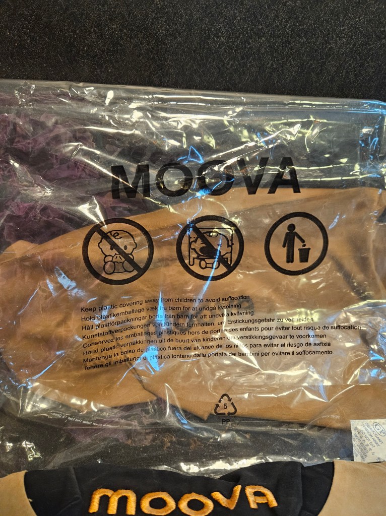 Moova carrier comes beautifully packed in its own bag, with printed instructions. It also has plastic wrap with custom printed instructions.