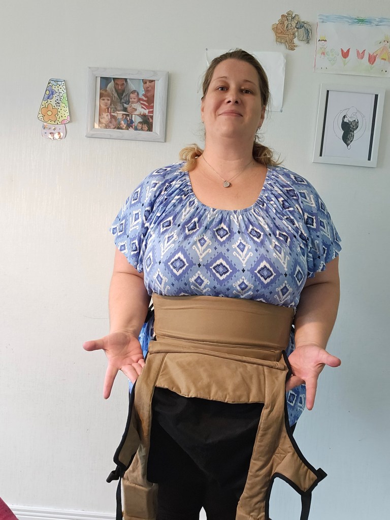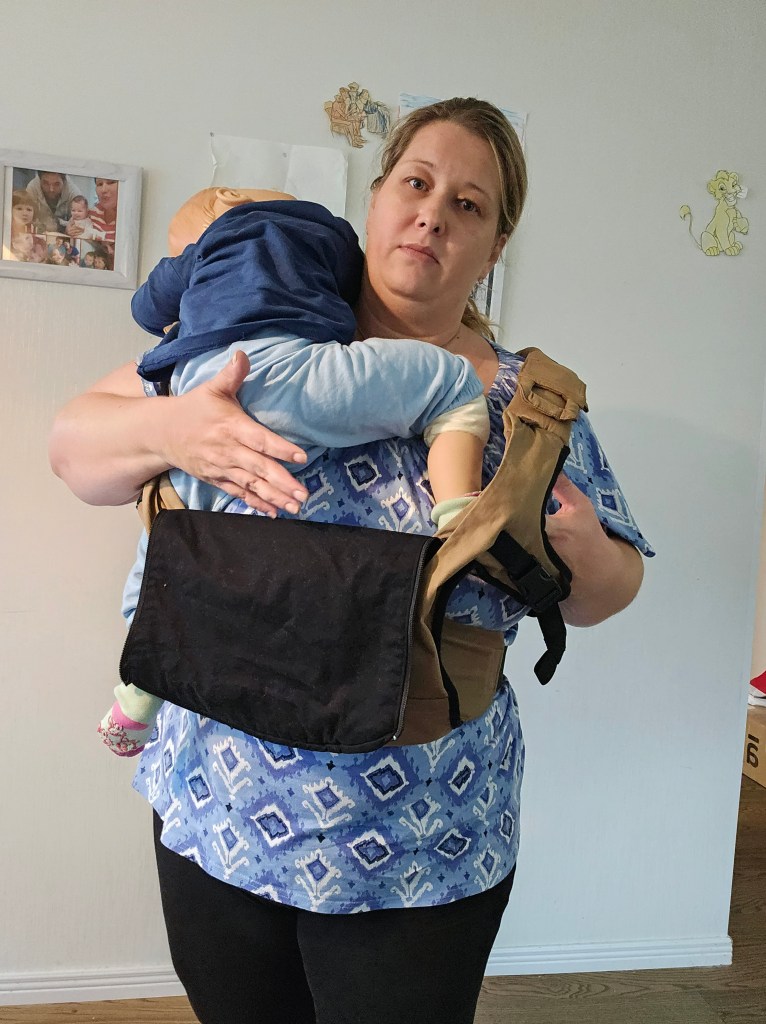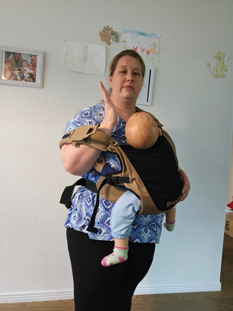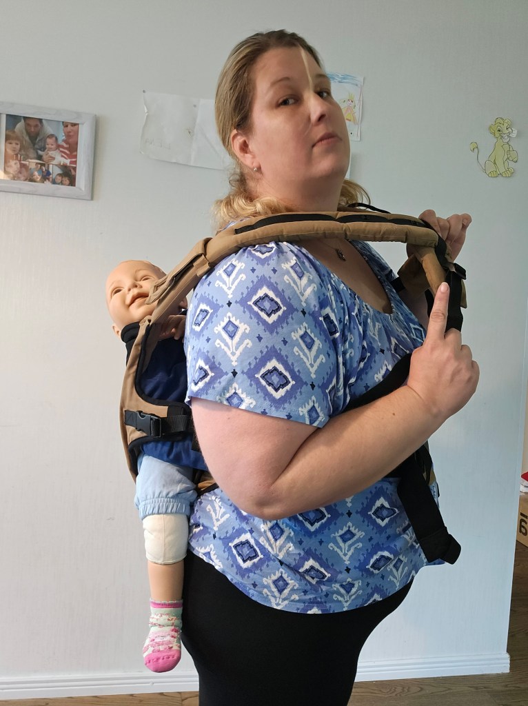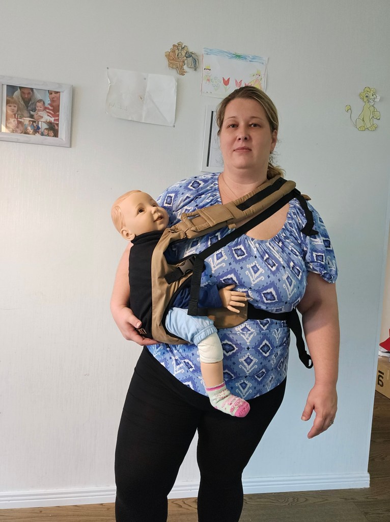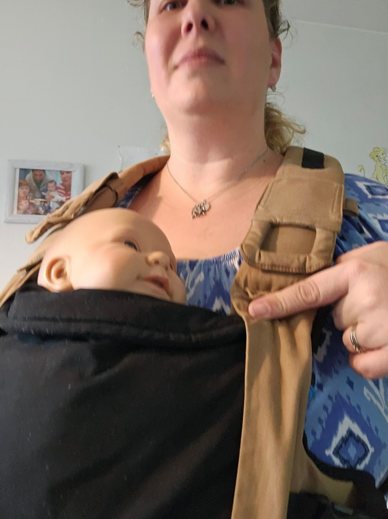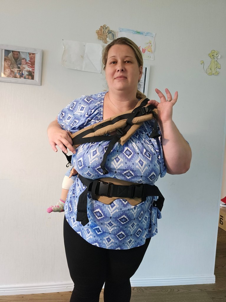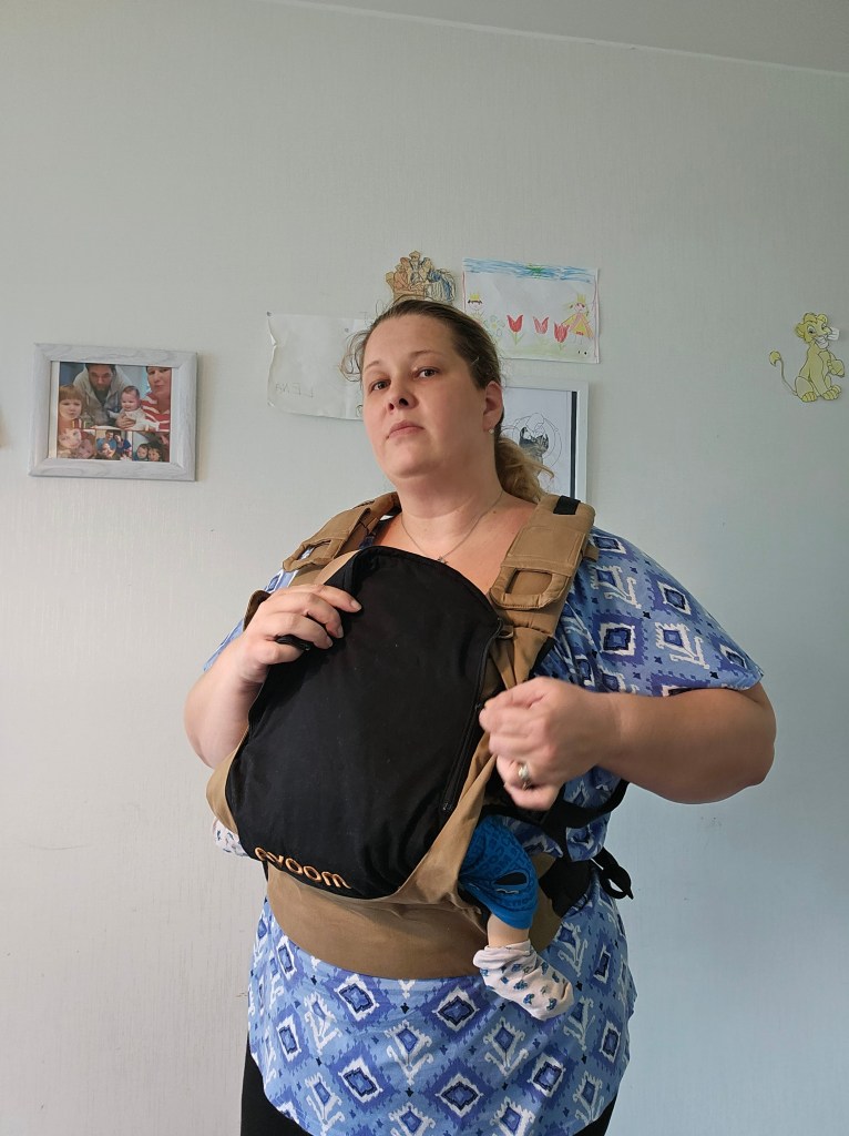 My 8 month old, weighting 10+ kg, outgrew the knee to knee support, but maintains the correct M shape. The carrier has x straps which are connected and you have to put them on over your and babys head. This was easy putting on, but combination of our big heads (he has a really big head) and my poor shoulder rotation made it hard to loose enough for easy dismount. Also front strap buckles made me realise how much weaker my left hand is. The straps are cushy and comfortable, and don’t move up your neck. I tried both apron and folded belt position, and found the folded one more comfortable. Unfortually my baby was uncooperative during our testing time, so we didn’t get a chance to try back or hip carrying. Thanks again Lena’s traveling carriers for this opportunity