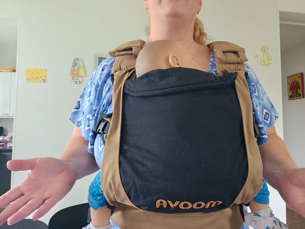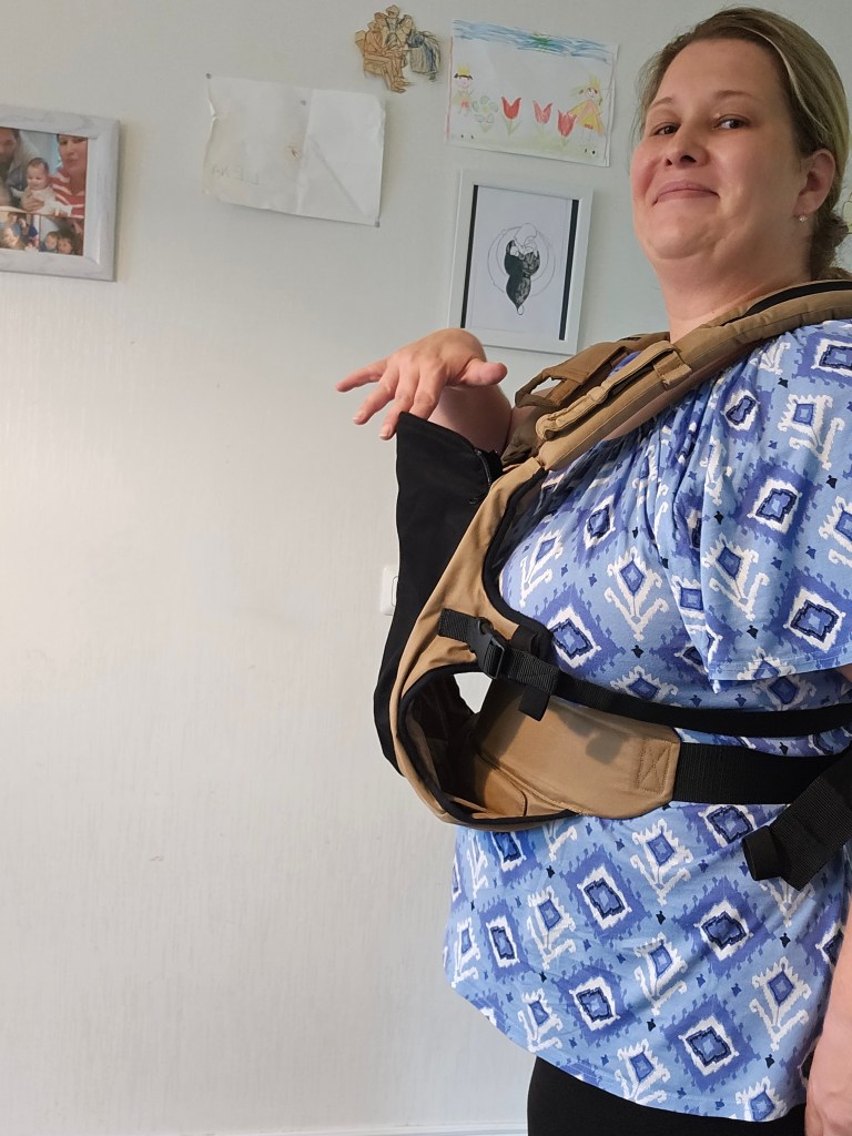 This is tricky for me to decide do I love or not. Once when you get used to transferring baby, it is an easy and mostly safe way to put the baby from front to back. But it also requires taking the baby out to always put in front. With smaller baby it was easy to make a transfer, but when I have tried with toddler there is when it gets tricky as much more space is occupied so it is getting harder to take out hands and put them back, this is when I noticed that I can get sweaty and tired and need to keep more safety checks. If you have not fully buckled zippers, this can become a hazard as leaning baby with weight can get them open. Also if you don’t keep a tension on baby can lean too much backwards. It still should be somewhat safe that baby can’t fall from it easily, but it is something you should be aware of.