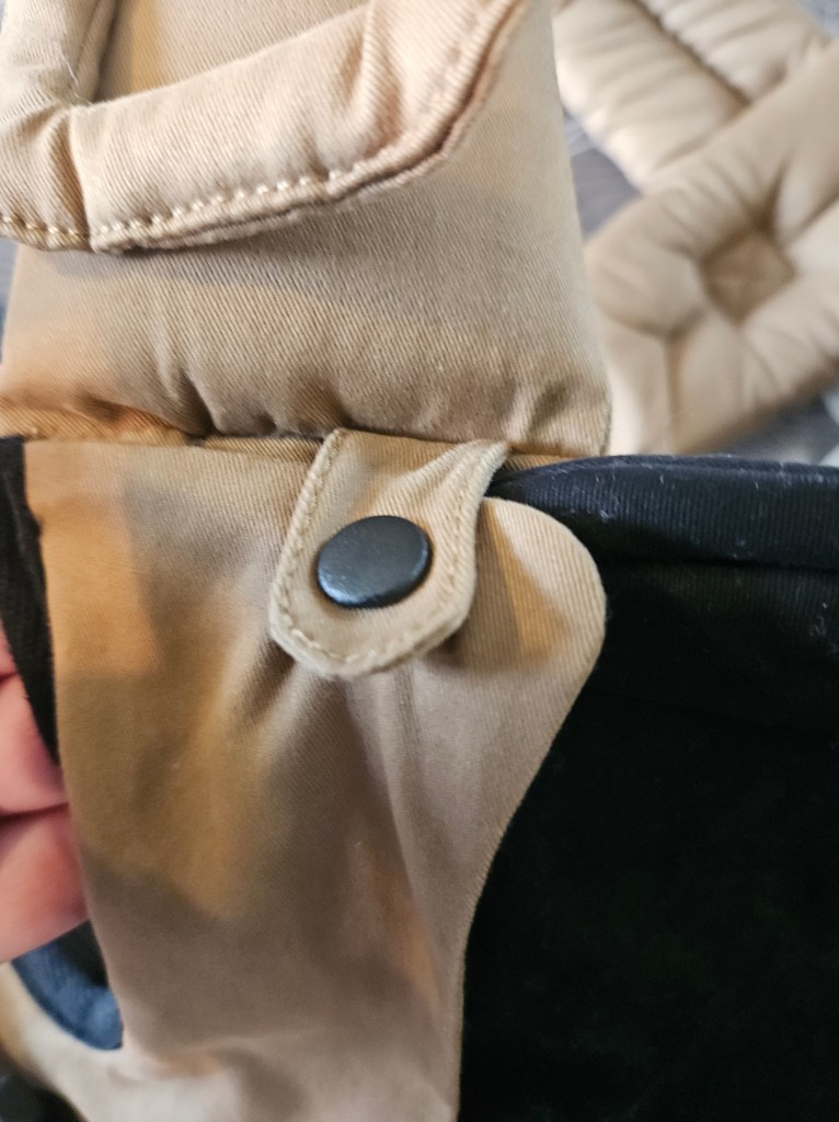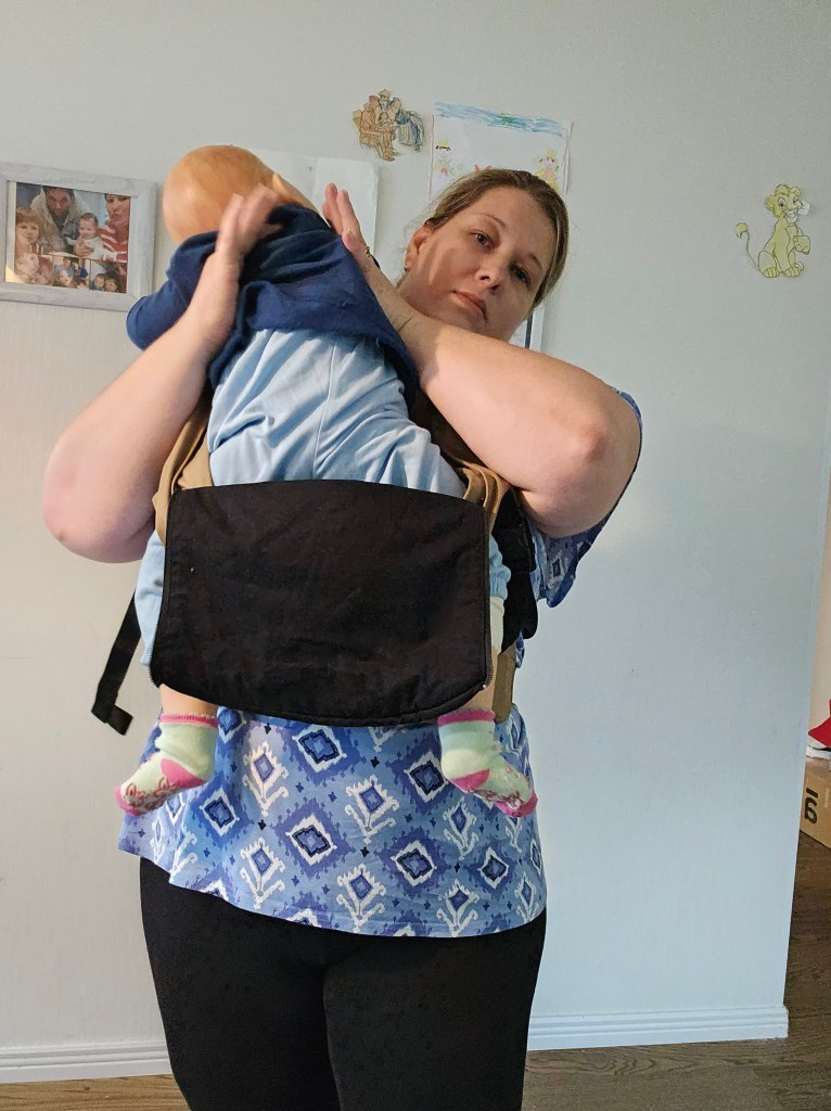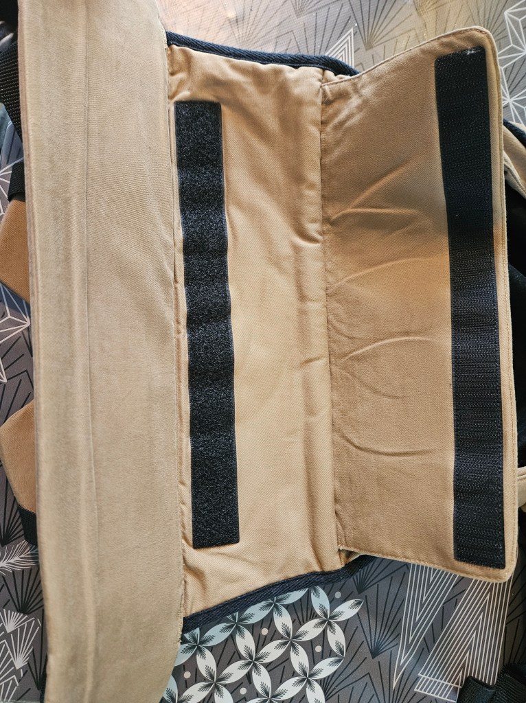 Here, you can see plenty of useful details to protect zipper and baby when setting up. For front carry, this is an amazing option. The only downside is that you need to make sure they are zipped all the way up before putting the baby on a back as they can slide during the weight of the baby and tension.