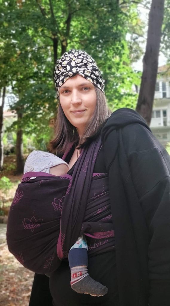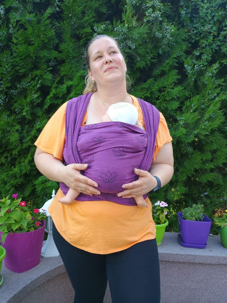 Baby boy is 3 month old and weighs 6,5 kg. He took a long nap while enjoying babywearing. I loved it, so soft, light, comfort on shoulders. This wrap came to me new and it is already soft, so it doesn’t require “breaking”. Easy to use and moldable, great for wrapping small babies. Design is discreet and easy to match with everything. I would recommend it especially for beginners. Thanks to Lenas Traveling Carriers and Bajaga for giving me the opportunity to try this beautiful wrap.