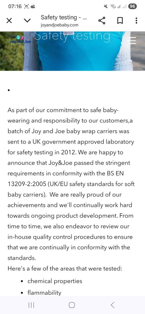 „Da li je ova marama testirana i izrađena prema standardima za nošenje dece?“