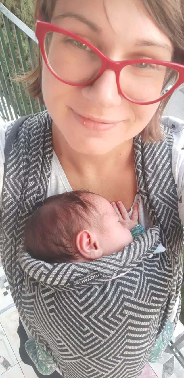 Mother who fell in love with babywearing and wants to help others understand all benefit and connections that wearing babies brings.